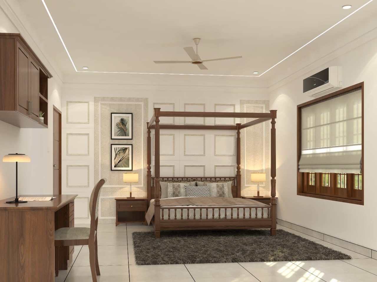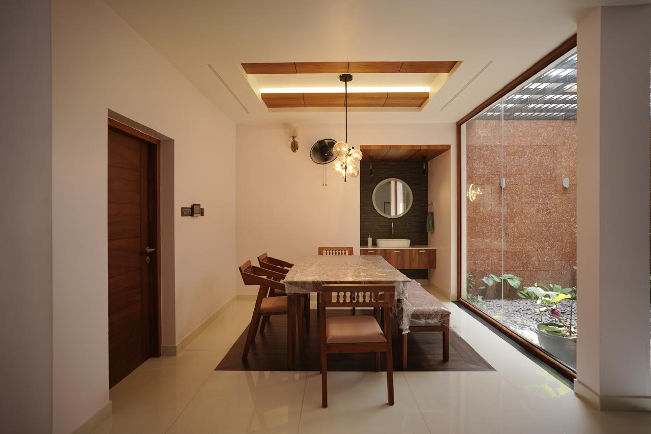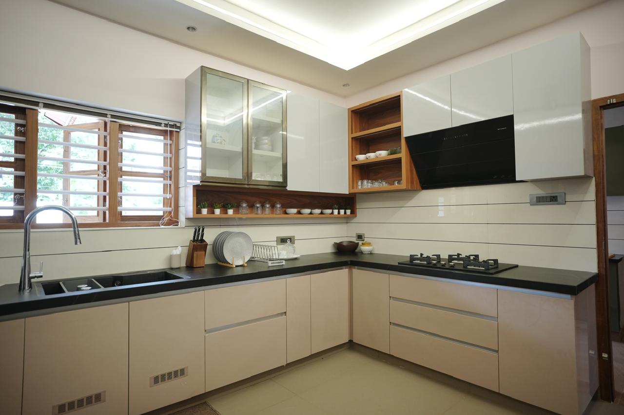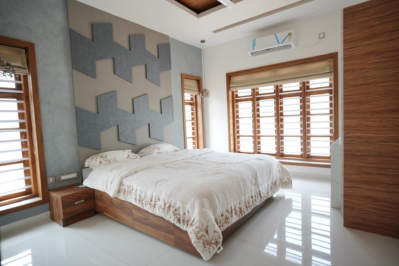 This building’s design features a traditional gable roof style that gives it a classic, pitched appearance. The façade combines several textures, including stone veneer, white plaster, and warm wood elements on the gables and eaves. The modern aesthetic is introduced through a slatted metal gate and a long, covered gateway, creating a harmonious blend of traditional and contemporary architecture.